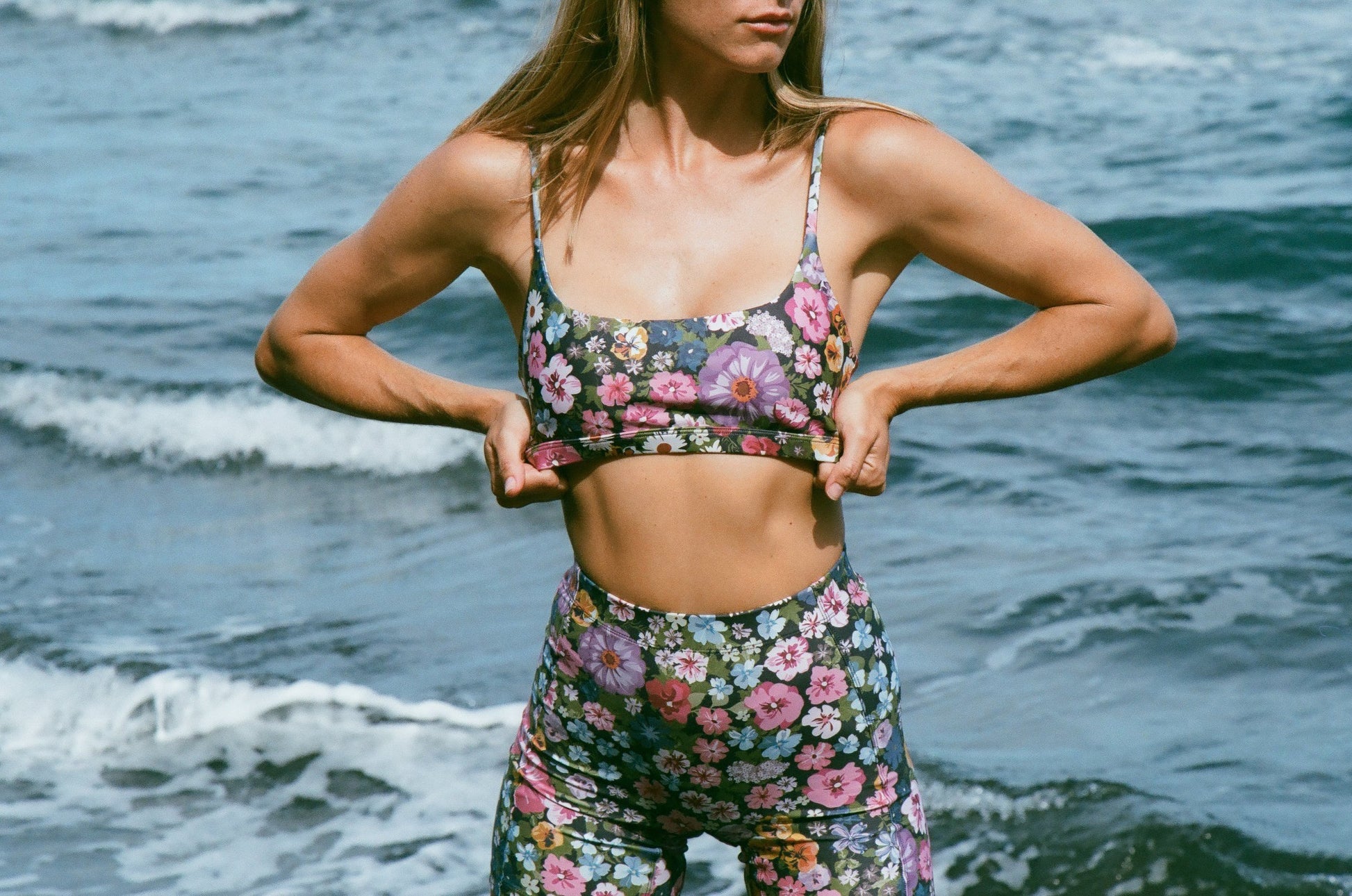 A spaghetti strapped active bra with boxed neck line and adjustable straps. Perfect for everyday wear and movement.
